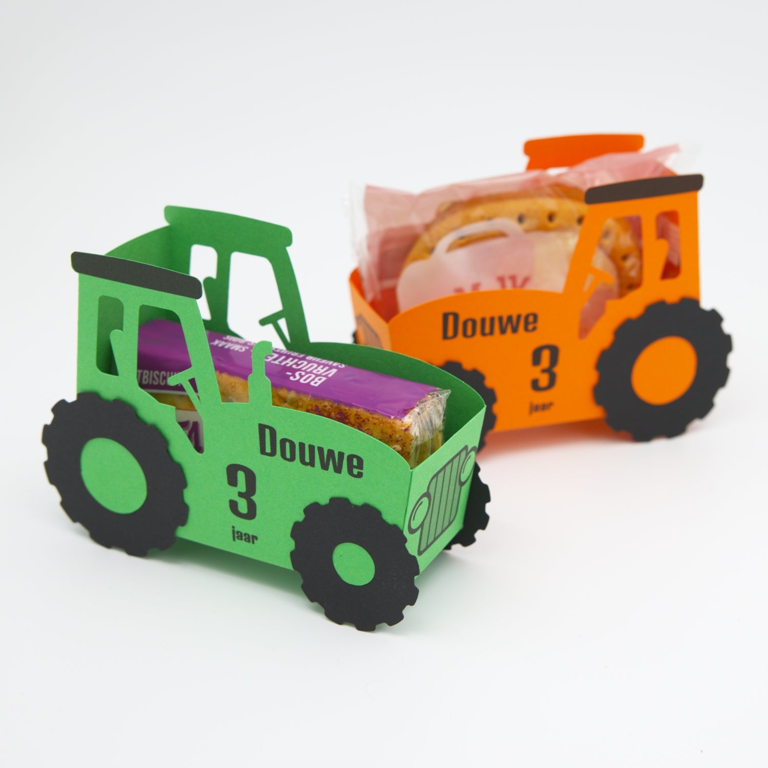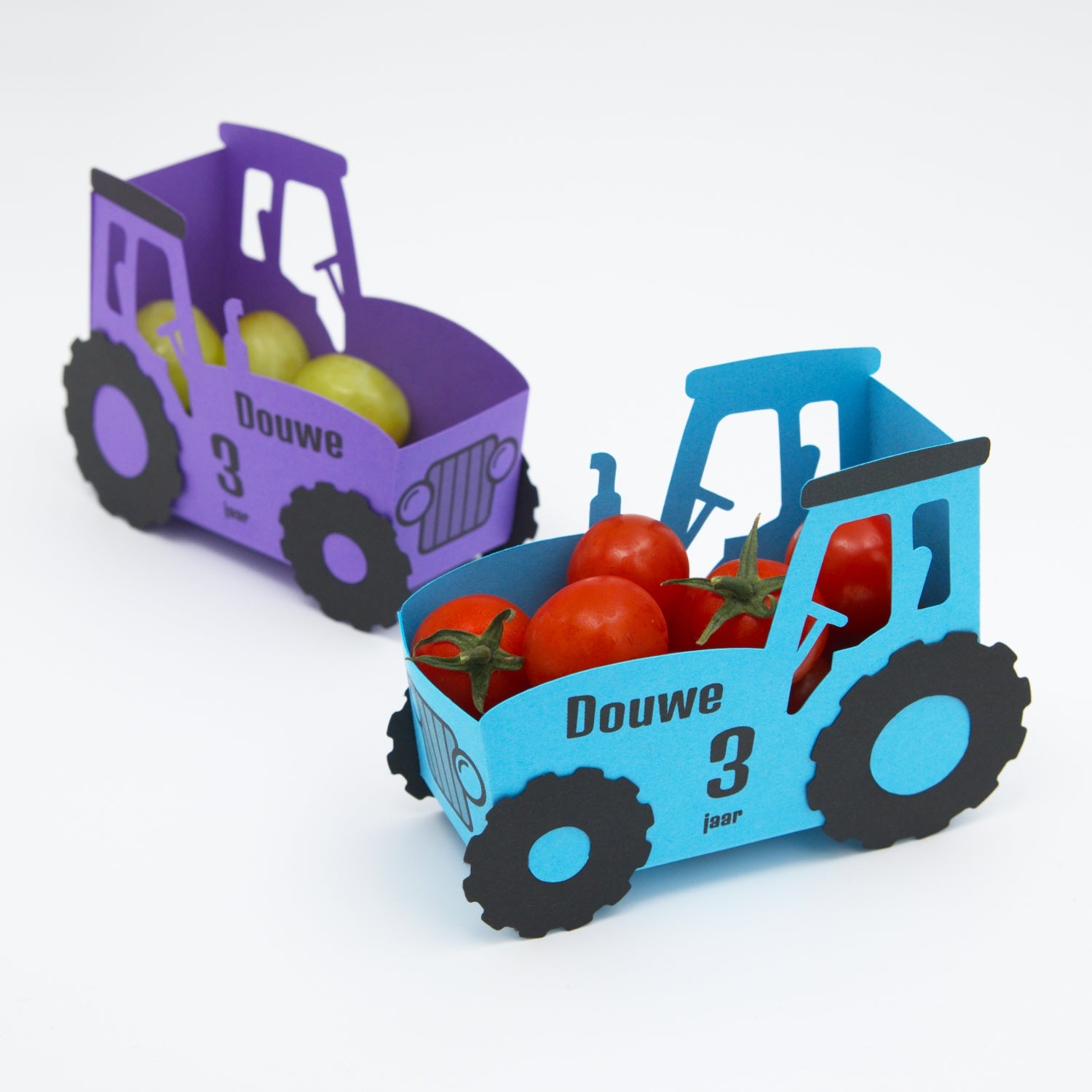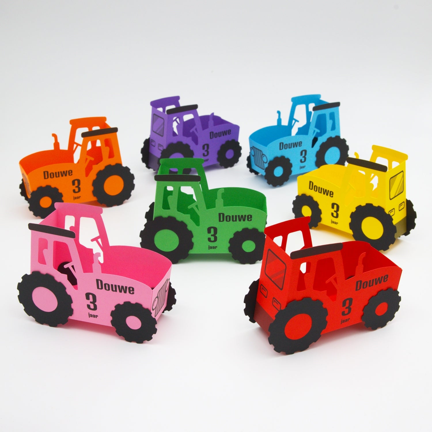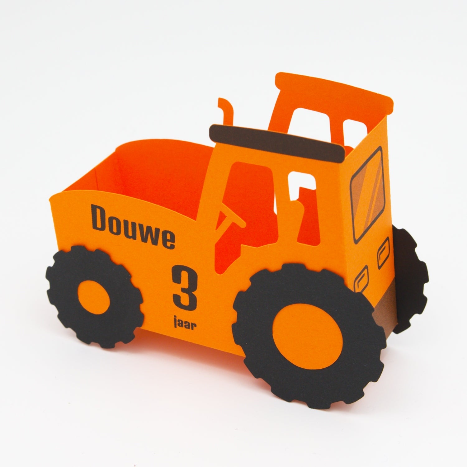 De traktors worden plat geleverd in een envelop of brievenbusdoos en kunnen eenvoudig in elkaar worden gevouwen. Je hoeft alleen de flappen aan de onderkant in elkaar te vouwen. Plakken is dus niet nodig.