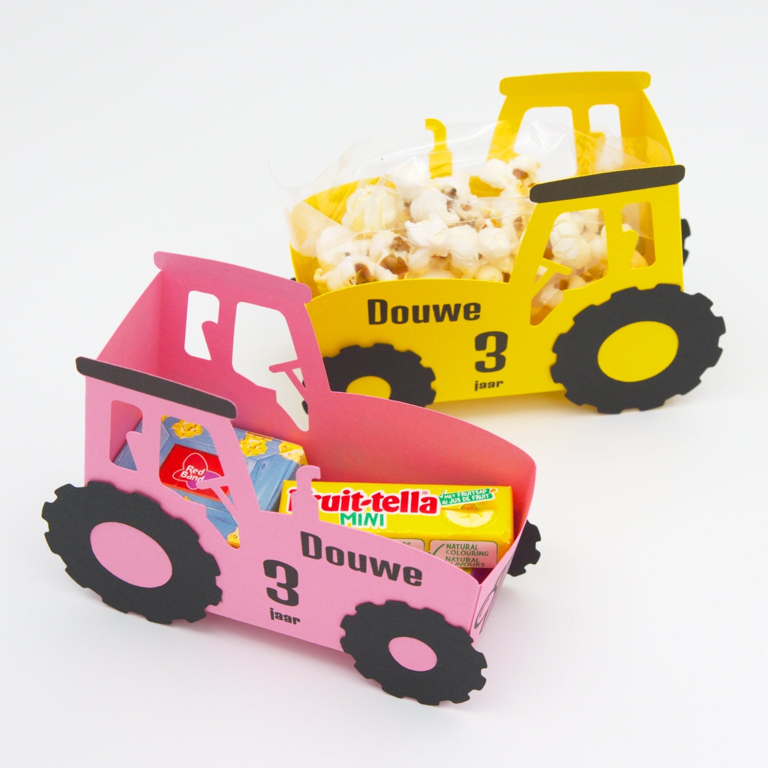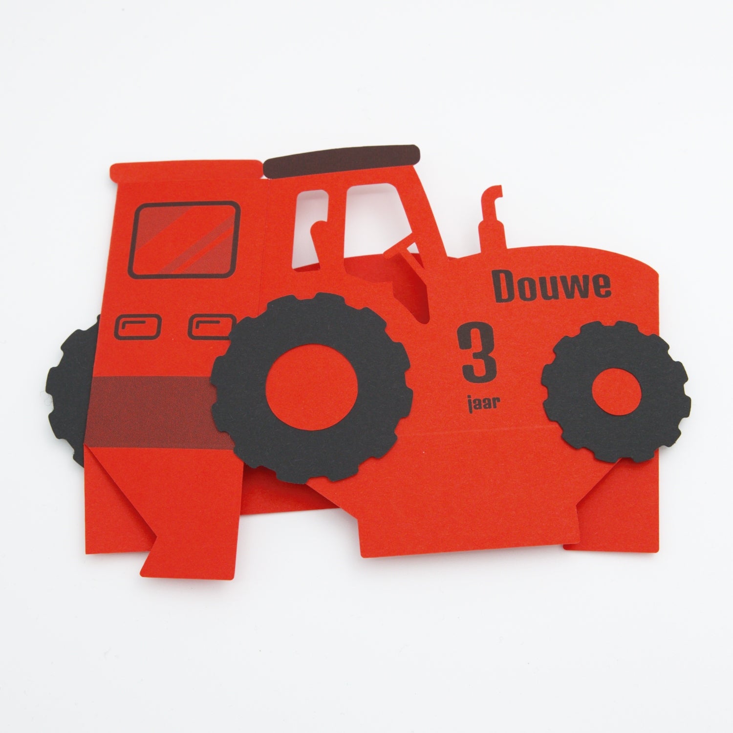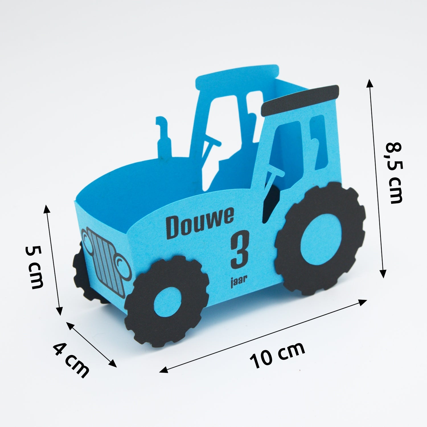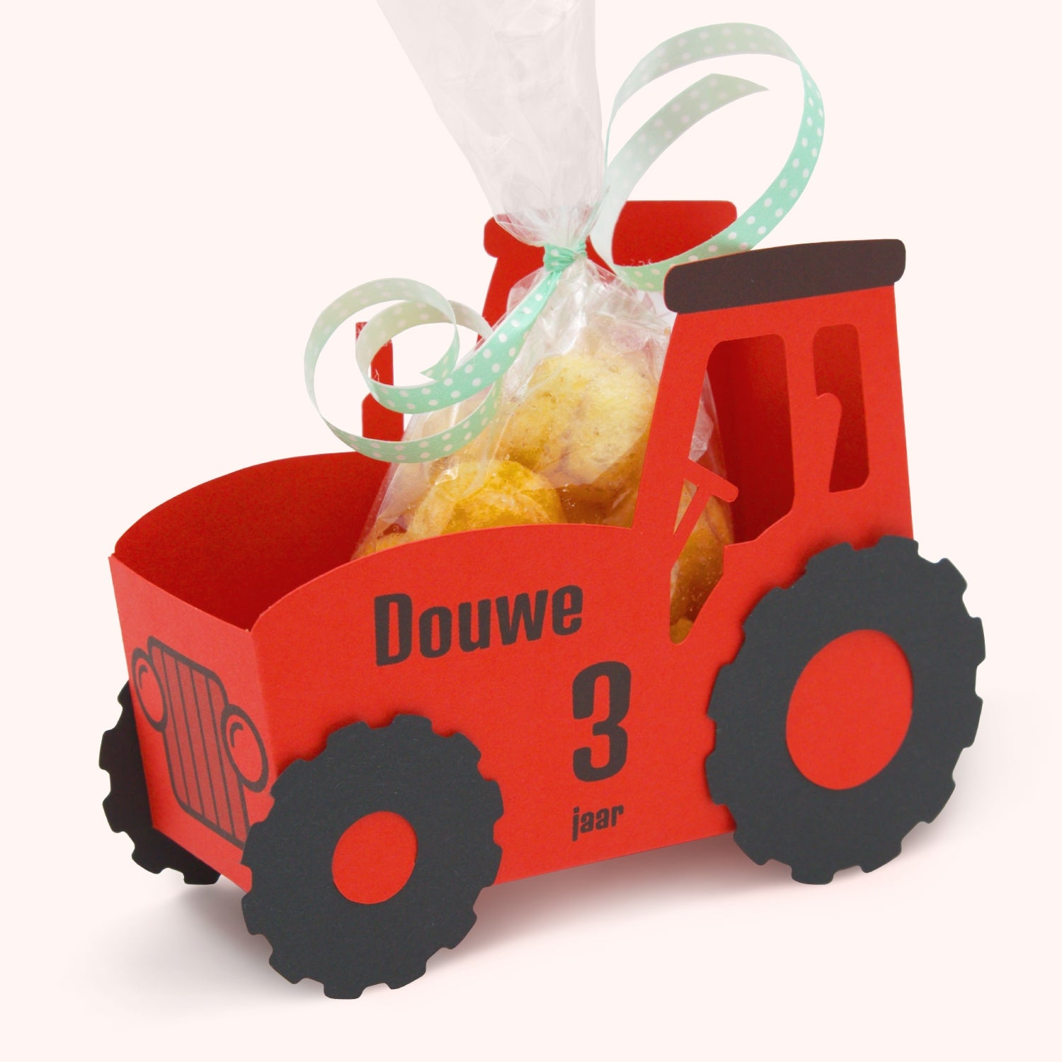 De traktors worden plat geleverd in een envelop of brievenbusdoos en kunnen eenvoudig in elkaar worden gevouwen. Je hoeft alleen de flappen aan de onderkant in elkaar te vouwen. Plakken is dus niet nodig.